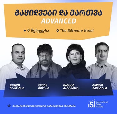 კურსის მიზანია მონაწილეებს დაეხმაროს უკეთ დაგეგმონ და წარმართონ მოლაპარაკების პროცესი ისე, რომ ეს იყოს ეფექტური, ადამიანური და ნაკლებად სტრესული. პროგრამა აერთიანებს სხვადასხვა მიმართულების სპეციალისტებს, რომლებიც საკუთარი გამოცდილებით წარმოაჩენენ გაყიდვების და მენეჯმენტის ხელოვნებას.